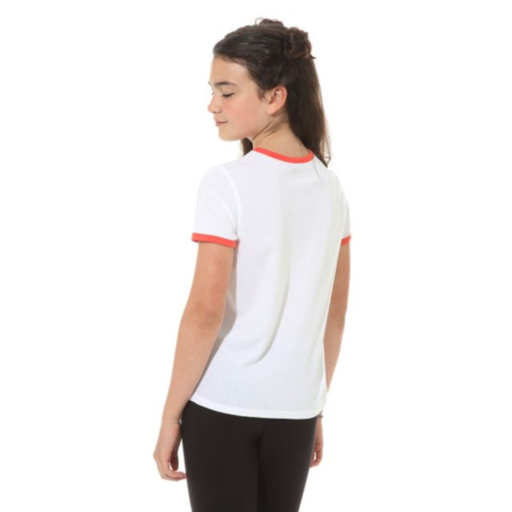 La T-shirt Vans Girl Rainbow Patch White Racing Red è una maglietta da bambina realizzata in 100% jersey di cotone leggero con grafica sul davanti.