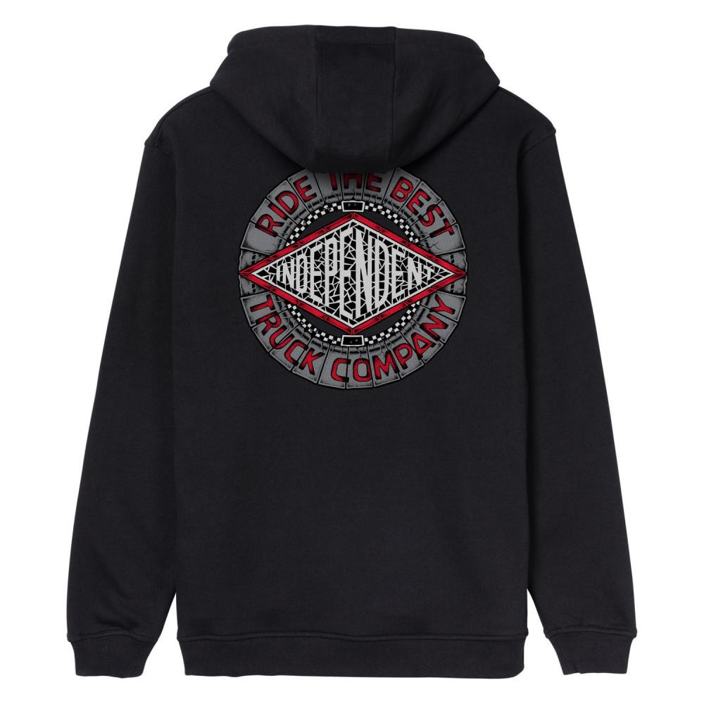 La Felpa Independent Zip Hood Mako Tile Summit Black in misto cotone è una felpa zip 330 g/mq, vestibilità regolare, felpa con cappuccio e tasche laterali, stampa grande dietro e piccola davanti con Artwork di Mako.