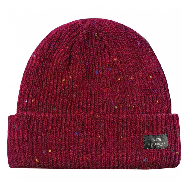 Il Berretto Globe Ryley Beanie Blood Nep è un cappello da uomo a costine con risvolto e piccola etichetta anteriore by Globe.