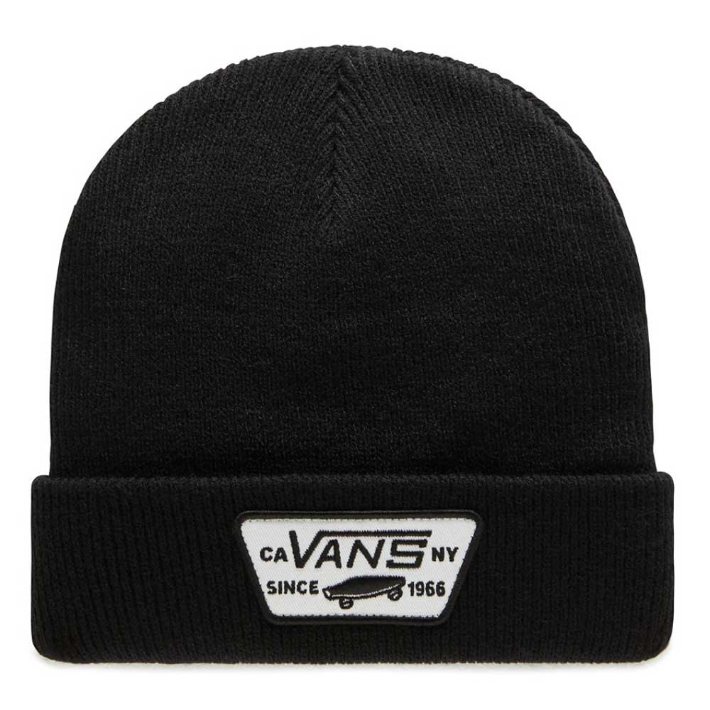 Il berretto Milford è realizzato in 100% acrilico e presenta un'applicazione Vans con punto overlock sul bordo.