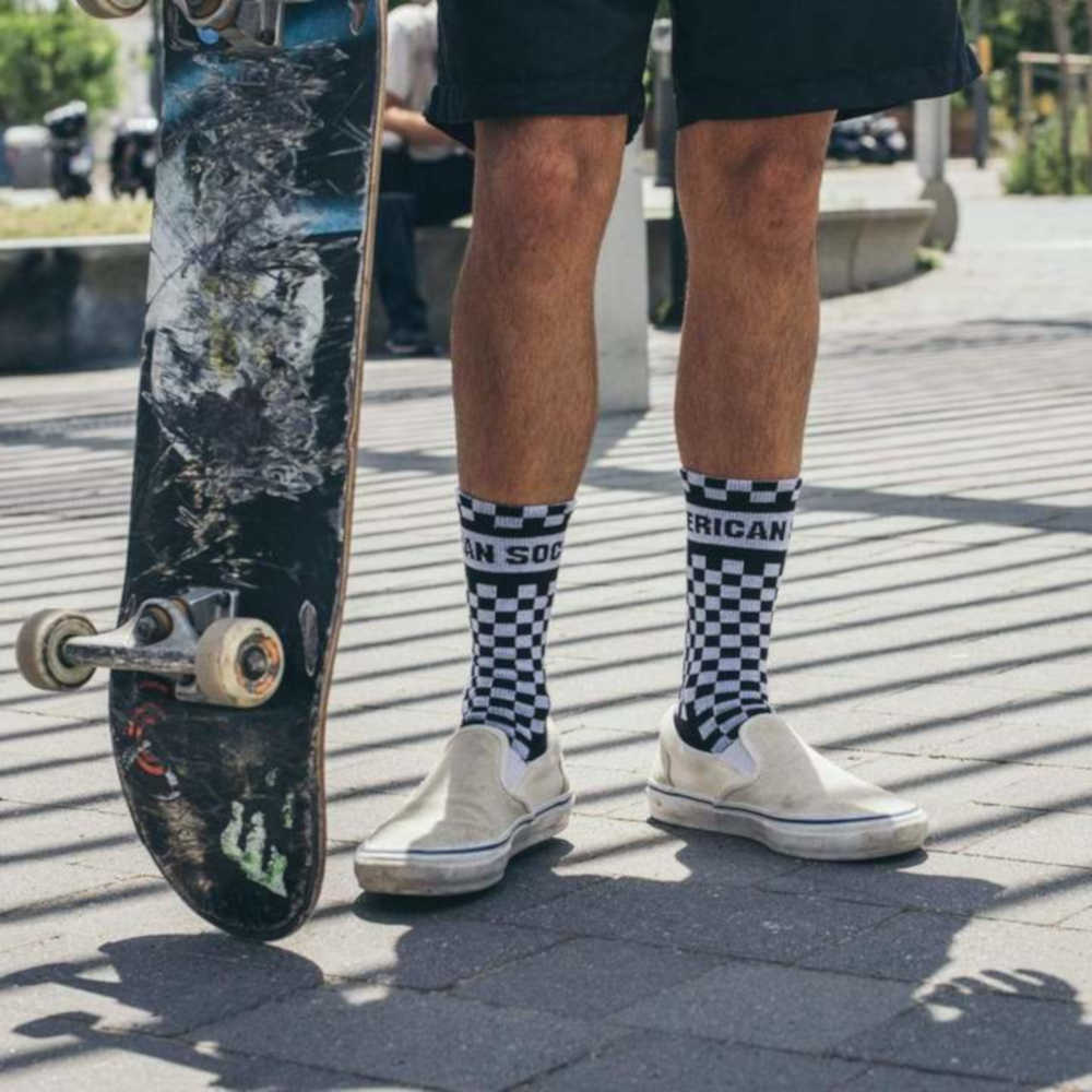Le Calze American Socks Mid High Checker Board sono Calzini di Lunghezza Mid High. Produzione Eco-Friendly made in Barcellona. Vegan Friendly. Misto Cotone Antibatterico e con Controllo dell'Odore.