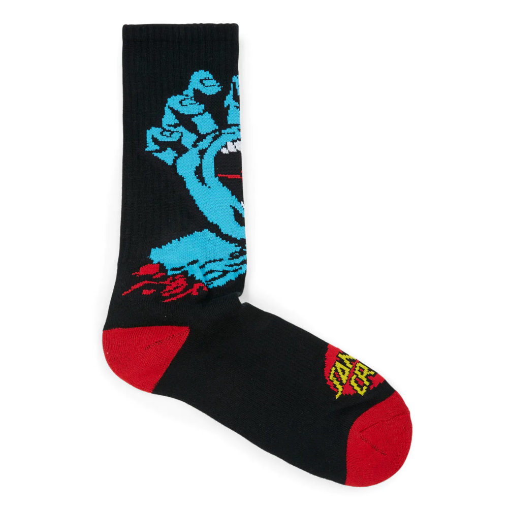 Le Calze Santa Cruz Sreaming Hand Sock Black sono calzettoni da uomo alla caviglia in taglia unica stampate con dettagli jacquard e realizzate in misto cotone.