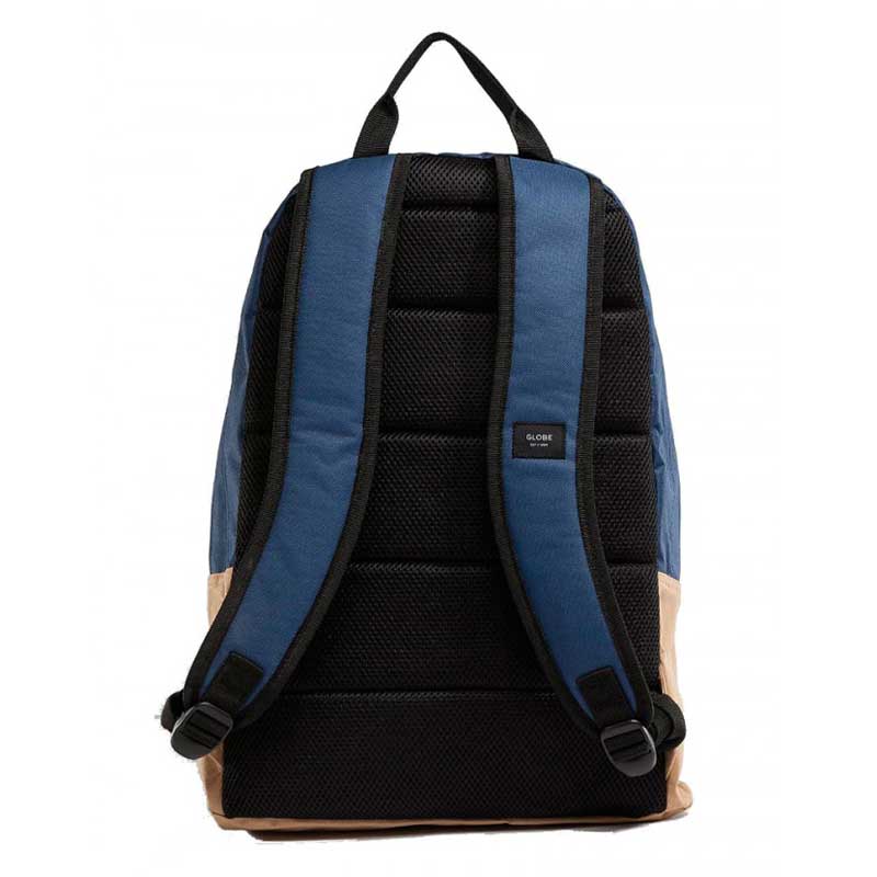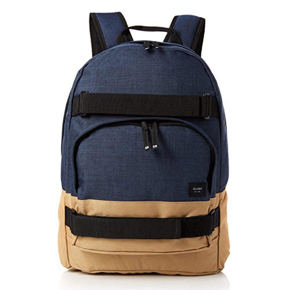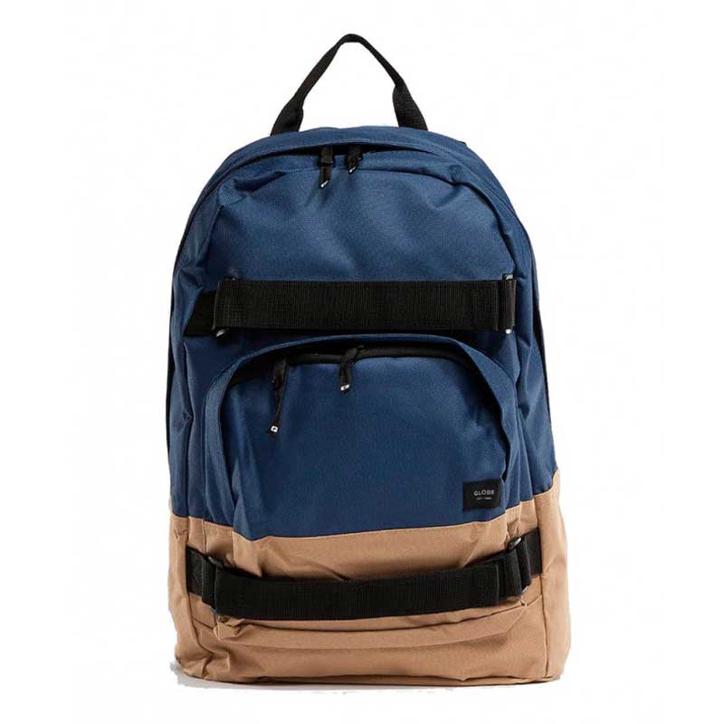 Lo Zaino Globe Thurston Backpack Navy Tan convince per il suo design senza tempo e le sue molteplici funzioni. L'ampio scomparto principale offre spazio sufficiente per tutte le tue cose, mentre la seconda tasca con scomparti interni garantisce ulteriori soluzioni organizzative interne. Il pannello posteriore imbottito e gli spallacci imbottiti regolabili aggiungono maggiore comfort. Un sacco di spazio per tutte le cose che vuoi portare con te per la prossima uscita in skate. E, cosa più importante, si può facilmente legare la tavola grazie alle cinghie anteriori.