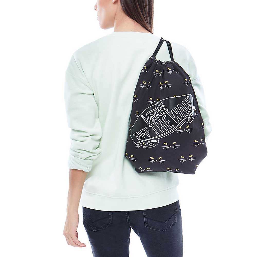 Lo Zaino Vans Benched Novelty Black Cat è una sacca con coulisse in 100% tela di cotone. Presenta spallacci in corda di poliestere e logo Vans serigrafato, misura 44,5 cm x 34 cm e ha una capacità di 12 litri.