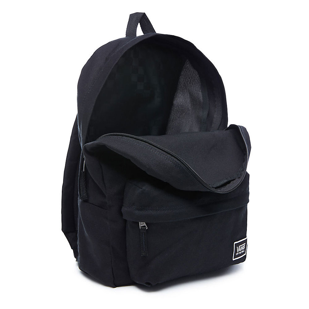 Lo Zaino Vans Realm Classic Bag Black Cat con due tasche è realizzato in 100% poliestere e presenta uno scomparto principale con chiusura a zip, una tasca anteriore portaoggetti, spallacci imbottiti regolabili e fodera in rilievo nel pannello interno posteriore. Misura 42,5 cm x 32,4 cm x 12,1 cm e ha una capacità di 22 litri.