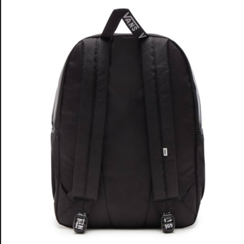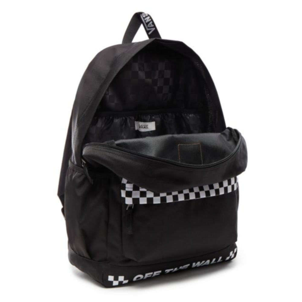 Lo zaino Vans Sporty Realm Plus è un modello a due tasche con scomparto principale con cerniera, tasca di protezione per portatile, tasche laterali con tasca portabottiglie di facile accesso e tasca anteriore portaoggetti per tenere tutto in ordine. Presenta inoltre il logo Vans "Off The Wall" e motivo checkerboard sul davanti.