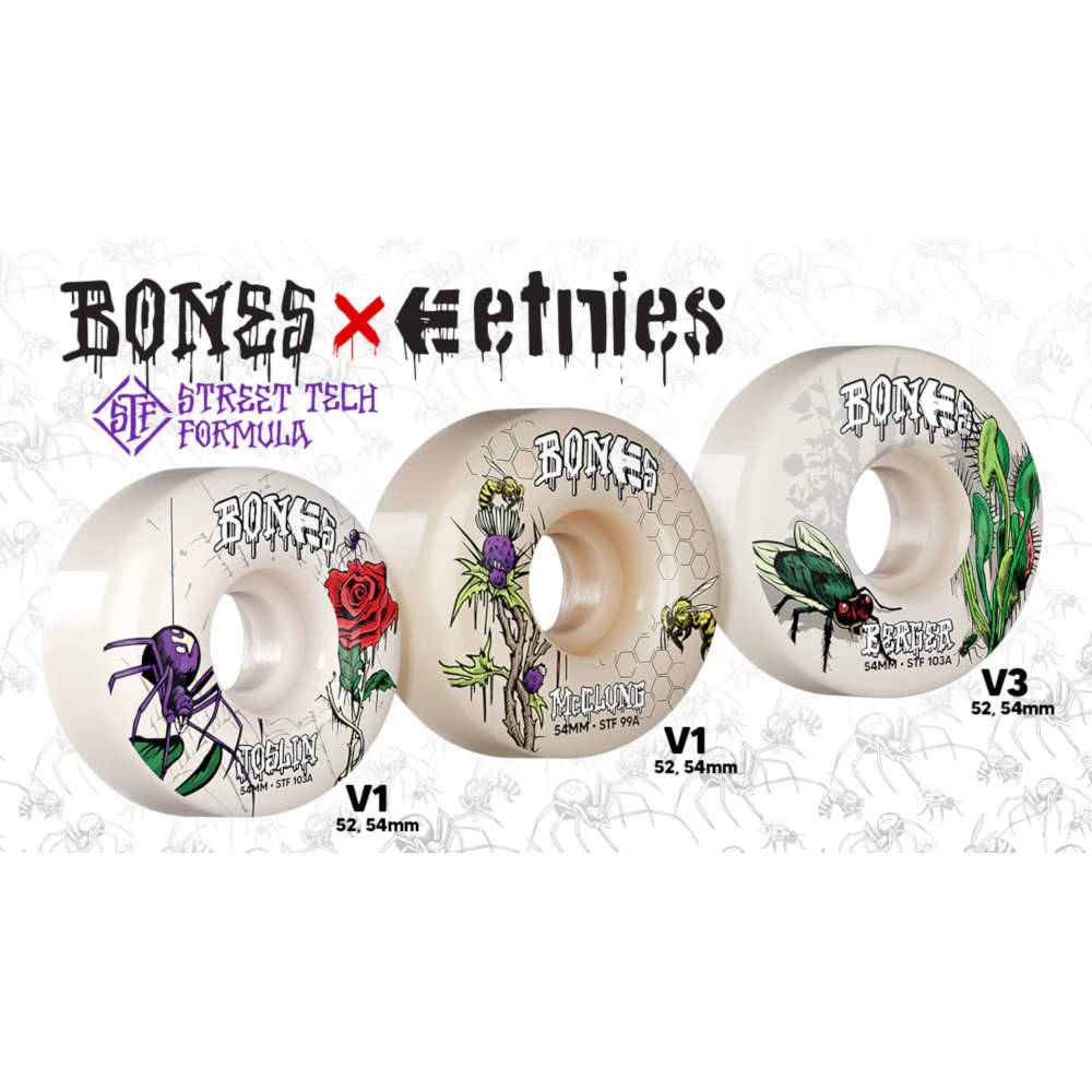 Le Ruote da Skate Bones Wheels Berger Etnies Collab V3 Slim Street 52MM sono realizzate con la formula Bones Street Tech, che offre una maggiore capacità di scivolamento e punti meno piatti creando una ruota con un rimbalzo sostanzialmente più elevato per una maggiore velocità e capacità di scorrimento sorprendenti. Prodotte negli Stati Uniti nello stabilimento Bones di Santa Barbara, in California, le serie V sono progettate per lo skater e progettate per le massime prestazioni. Le ruote sono vendute in set di quattro.
