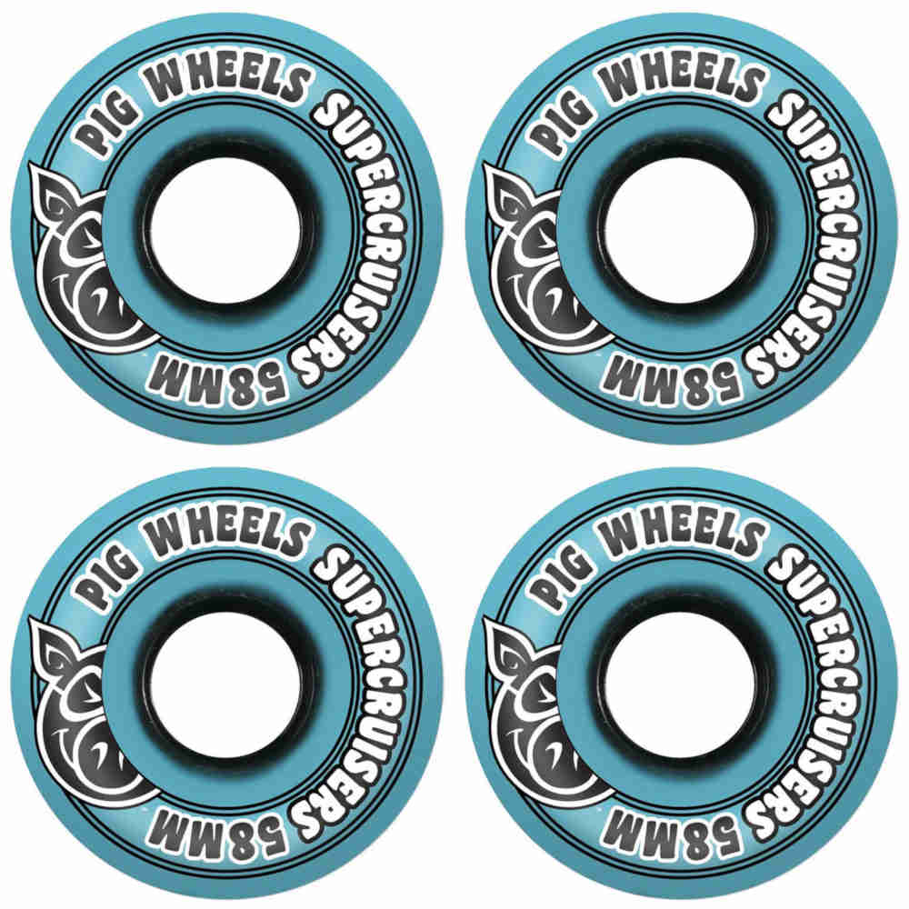 Le Ruote Pig Wheels Supercruiser Blue 58MM sono perfette per fare cruising con la tua tavola. Queste ruote con colorazione striata direttamente in fase di produzione nella mescola dell'uretano, grazie al loro grado di durezza ti permetteranno anche di effettuare qualche salto, tricks o ''skeitata'' con la tua tavola in una bowl.