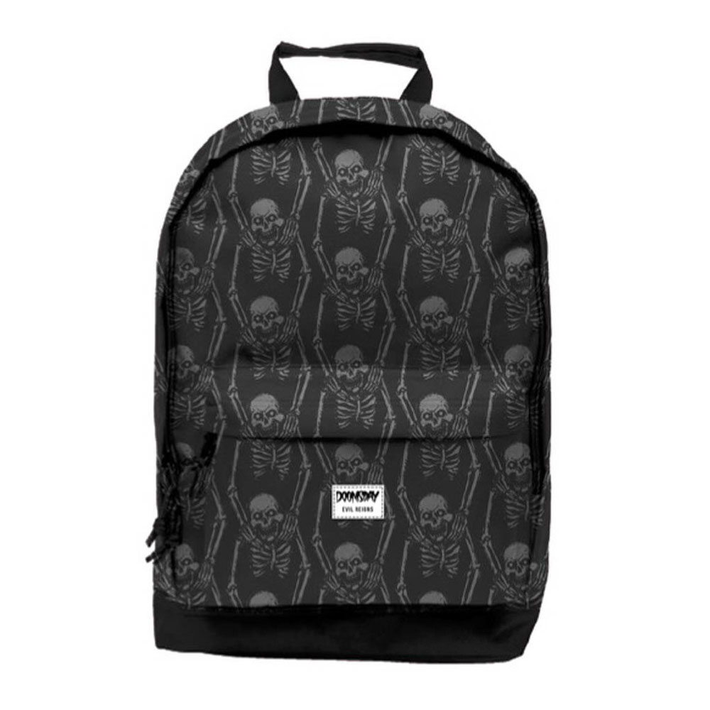 Se siete alla ricerca di uno zaino che fa in pieno il suo lavoro, allora lo Zaino Doomsday Chocke Backpack AOP è l'oggetto che fa per voi! Tutto in nero con stampa teschi all over, è dotato di un enorme scomparto principale ed un secondo scomparto sulla parte anteriore che è anche richiudibile con una cerniera. Le cinghie di carico regolabili sono leggermente imbottite, garantendo un miglior comfort.