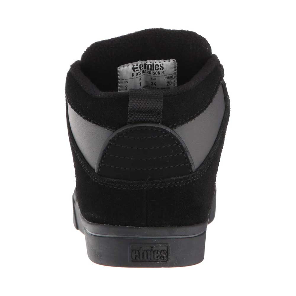 Le Scarpe Etnies Kids Harrison HT Black è un hightop fortemente ispirato al patrimonio Etnies. Questa suola è una suola finta-vulc con il battistrada Geo-Hex preferito dalla squadra. L'intersuola è costituita da una costruzione a cassa d'uovo, mantenendo la scarpa leggera con un'ammortizzazione aggiunta e una soletta in schiuma Lite 1.