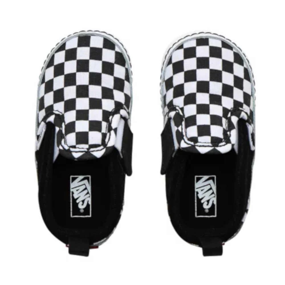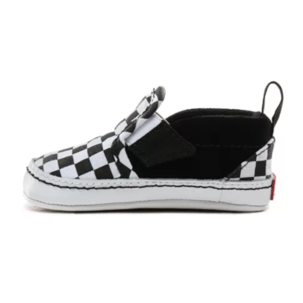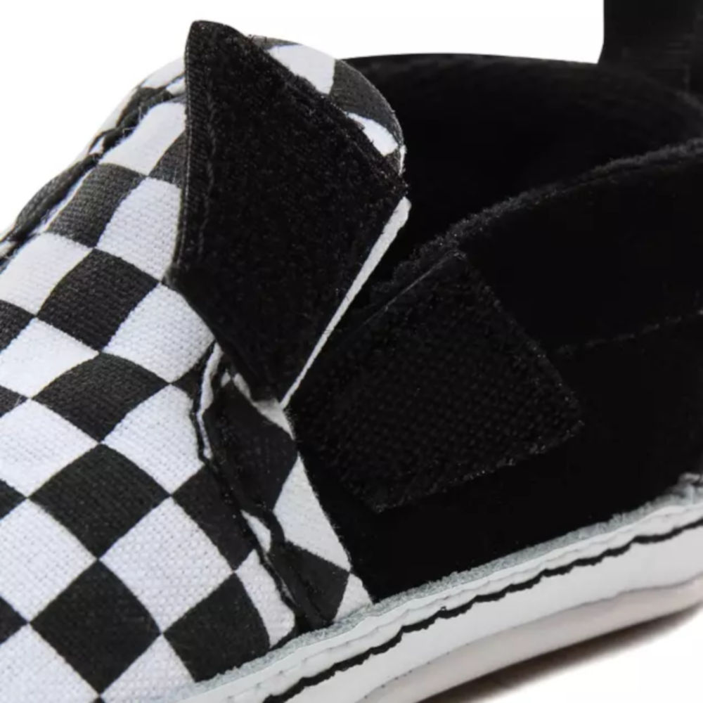 Le Scarpe Vans Slip-On V Crib Bebè Checkerboard riprendono lo stile delle Classic Slip-On originali migliorandone la calzabilità. Queste scarpe hanno una linguetta sul tallone per agevolare la calzata, inserto nascosto e una tomaia in tela stampata e pelle scamosciata con l'autentico motivo checkerboard. Una nuova stampa sulla suola richiama l'iconico motivo waffle di Vans, mentre l'etichetta Vans sul tallone dà un ultimo tocco a questo modello classico.