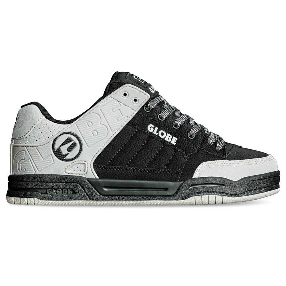 Le Scarpe da Skate Globe Tilt Black Black Alloy è realizzata in pelle sintetica, mesh, lycra, nylon e lacci riciclati. GlobeLa classica silhouette di skate è caratterizzata da un collare esterno in TPR modellato per supporto e durata, e dal modello di suola S-Trac™ per una maggiore aderenza e sensazione sulla tavola.