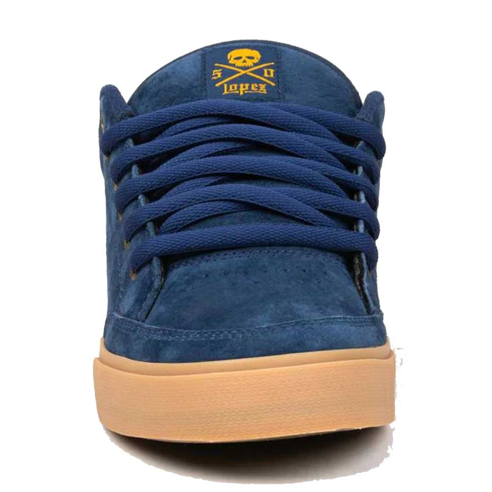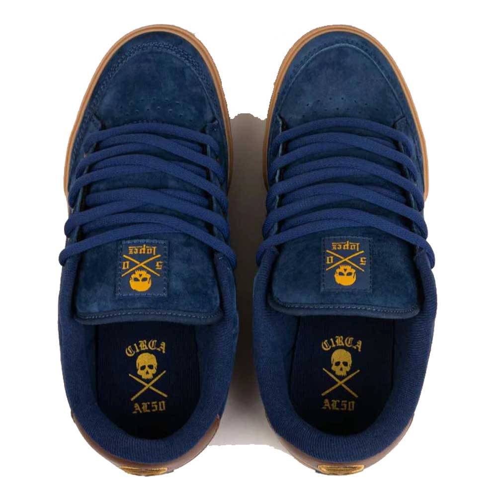 Le Scarpe da Skateboard C1rca AL 50 Navy Gum sono un modello firmate dallo skater Adrian Lopez. Questa scarpa, grazie alla sua Tomaia e ad un mix di eccellenti materiali, è ormai un gran classico. Punta con tripla cucitura, fori di metallo passa lacci, linguetta imbottita in mesh con logo teschio, strap elastico sotto la linguetta, sottopiede ammortizzato, suola vulcanizzata con ottimo grip.