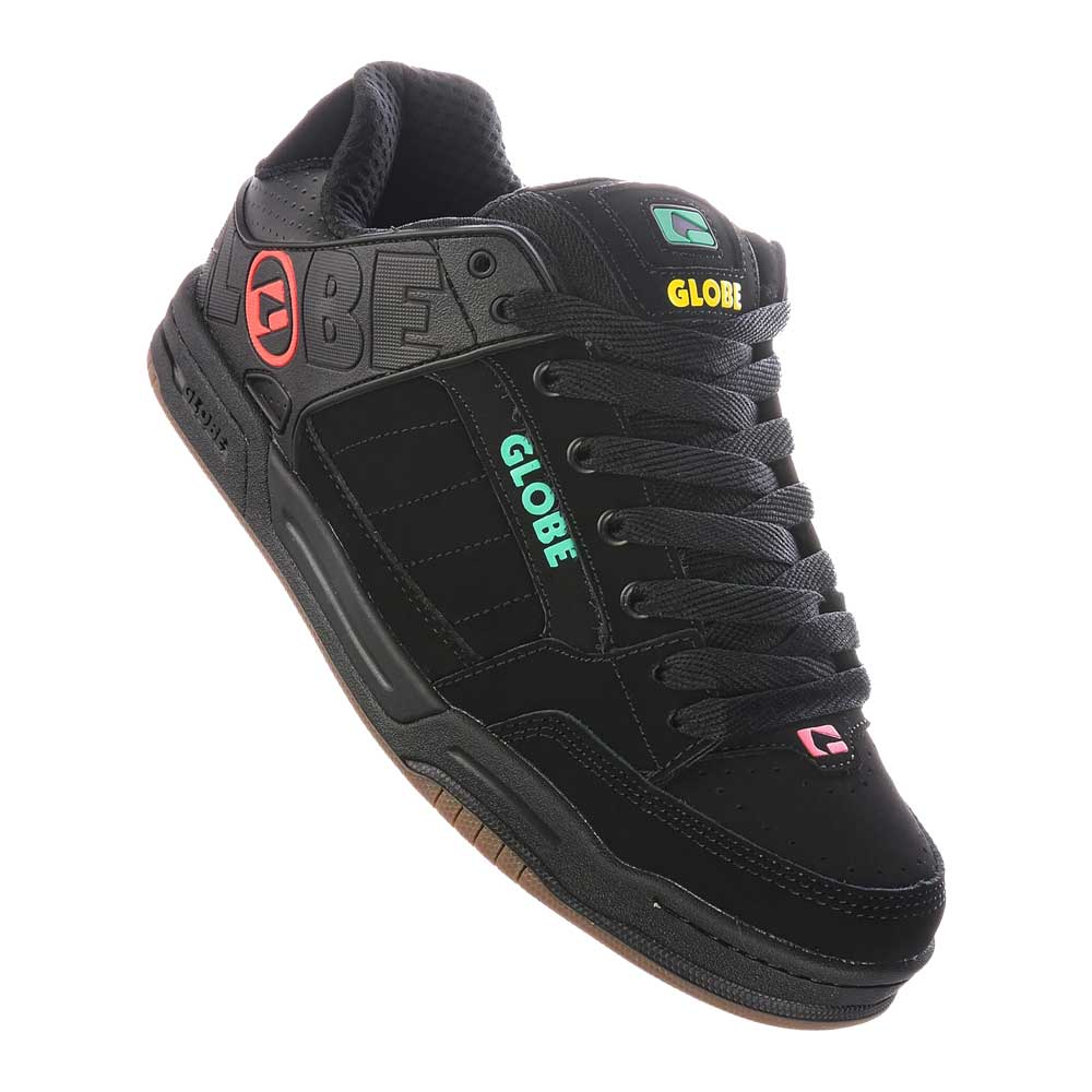 Le Scarpe da Skate Globe Tilt Black Rasta è realizzata in Action Nubuck, Nylon Ripstop, TPR. Queste scarpe hanno la classica silhouette da skate e sono caratterizzate da un collare esterno in TPR modellato per supporto e durata, e dal modello di suola S-Trac™ per una maggiore aderenza e sensazione sulla tavola.
