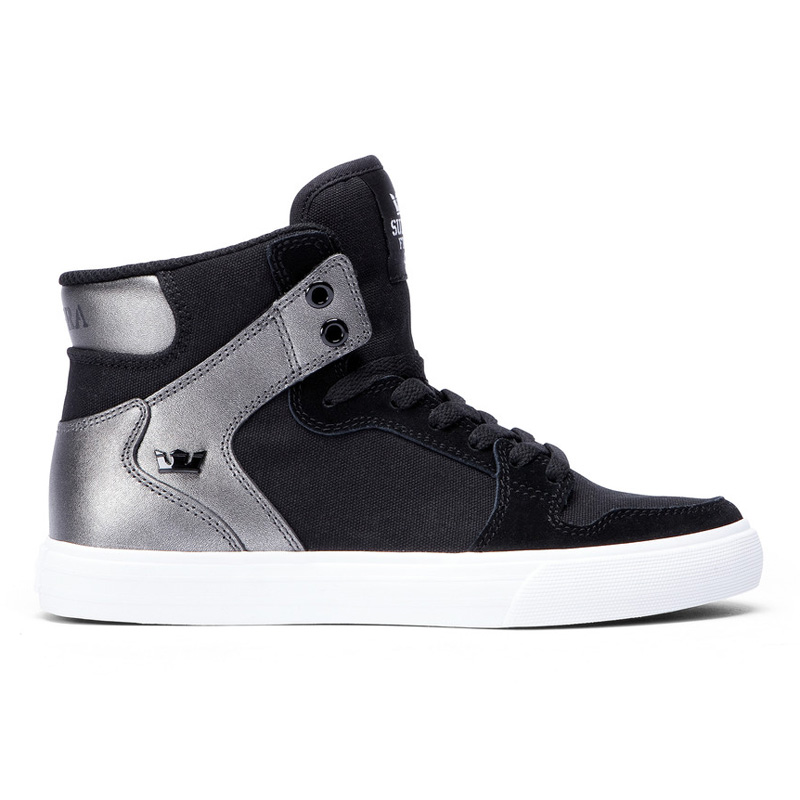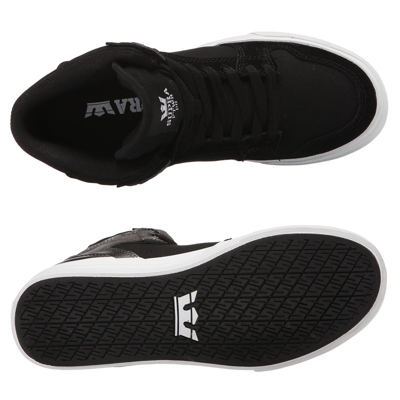 Le Scarpe da Skate Supra Wo's Vaider Black Gummental hanno il tradizionale top alto Vaider superiore su una suola vulcanizzata che è stata ricostruita per un piede femminile ed è dotato di varianti dinamiche esclusivo per la collezione da do donna. Una imbottitura extra, linguetta in mesh allineati e collare forniscono un eccellente supporto e comfort al piede in qualsiasi situazione.