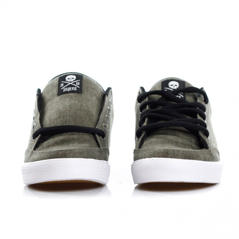 Le Scarpe da Skateboard C1rca Lopez 50 Bungee Cod White sono un Pro model firmate dallo skater Adrian Lopez. Questa è scarpa grazie alla sua Tomaia ed un mix di eccellenti materiali è ormai un grande classico. Punta con tripla cucitura, fori di metallo passa lacci, linguetta imbottita in mesh con logo teschio, strap elastico sotto la linguetta, sottopiede ammortizzato, suola vulcanizzata con ottimo grip.
