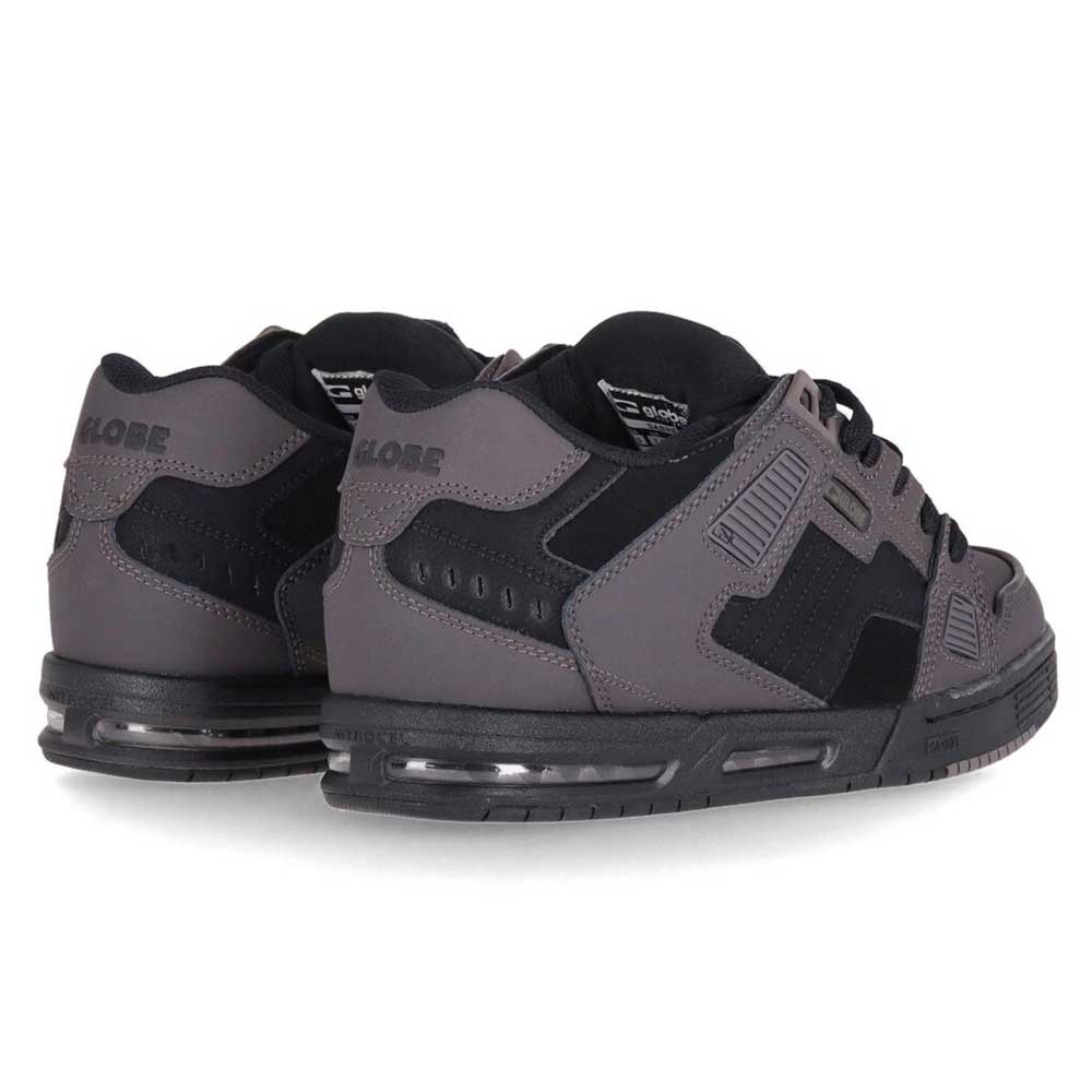 Le Scarpe da Skateboard Globe Sabre Black Grey Orange sono scarpe Stile skateboard ultra resistente con struttura a calzino per garantire comfort e stabilità. La Sabre nel colore Black/Gunmetal fa parte della nostra serie Heritage. È realizzata in Action Nubuck / Synthetic Nubuck e presenta una fodera a calzino Step-in con suola airbag Nitrocel™. È inoltre dotata del modello di suola S-Trac™ di Globe.