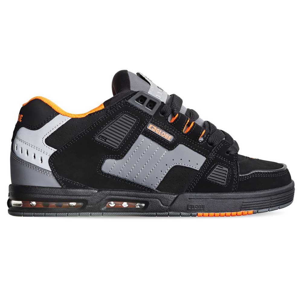 Le Scarpe da Skateboard Globe Sabre Black Grey Orange sono scarpe da skate ultra resistenti con struttura a calzino per garantire comfort e stabilità . La Sabre nel colore Black/Grey/Orange fa parte della nostra serie Heritage. È realizzata in Action Nubuck / Synthetic Nubuck / 3M e presenta una fodera a calzino Step-in con suola airbag Nitrocel™. È inoltre dotata del modello di suola S-Trac™ di Globe.