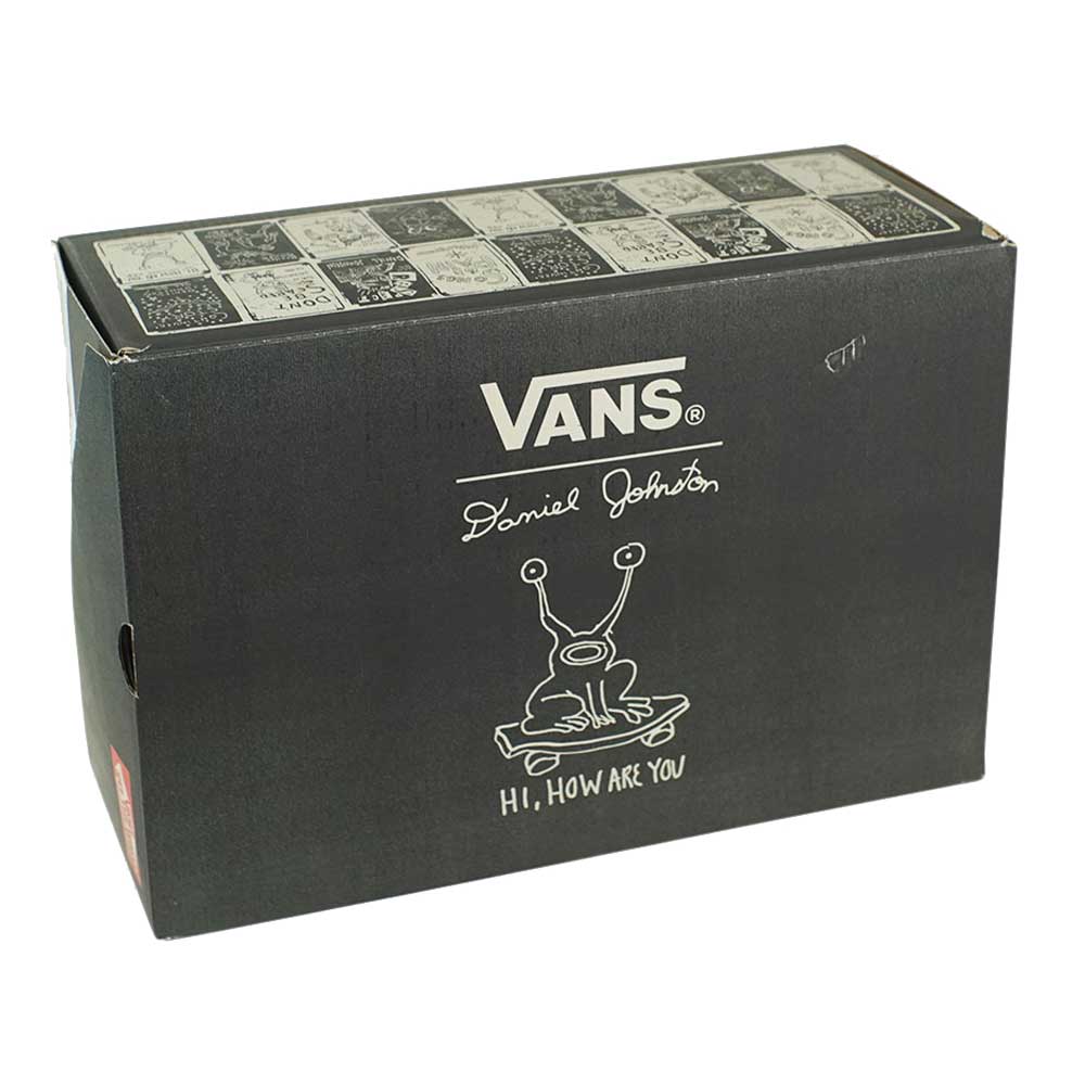 Le scarpe Vans Slip On in collaborazione con l'artista Daniel Johnston fanno parte della linea Skate. Realizzate con una tomaia completamente rivisitata, contrafforte sagomato sul tallone e rinforzo DURACAP™ modificato, offrono una vestibilità essenziale, più traspirante e resistente. Il nastro a due parti, con punta zigrinata più robusta, garantisce maggiore aderenza alla tavola. La suola in gomma-resina rivisitata che ha reso Vans famosa è stata ulteriormente migliorata con il composto in gomma SICKSTICK™ e il rinforzo interno del tallone per offrire maggiore aderenza, boardfeel, supporto e resistenza. Presentano una nuova finitura laterale, soletta POPCUSH™ per la massima ammortizzazione e protezione dagli impatti.