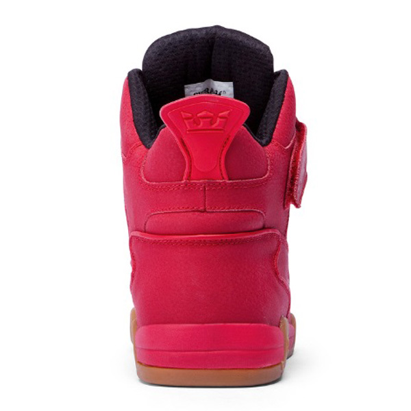 Le Scarpe da Skate Supra Bleeker Red Gum Crown presentano un top alto di ispirazione sportiva presentato in un design asimmetrico dominata da sovrapposizioni d'arco, un lungo vamp, una linguetta alta, ed una cinghia in velcro per un sostegno supplementare. Una Generosa imbottitura interna e l'intersuola in SUPRAFOAM, leggera con una doppia suola in gomma di trazione, assicurano al piede un ambiente confortevole, sicuro e dinamico.