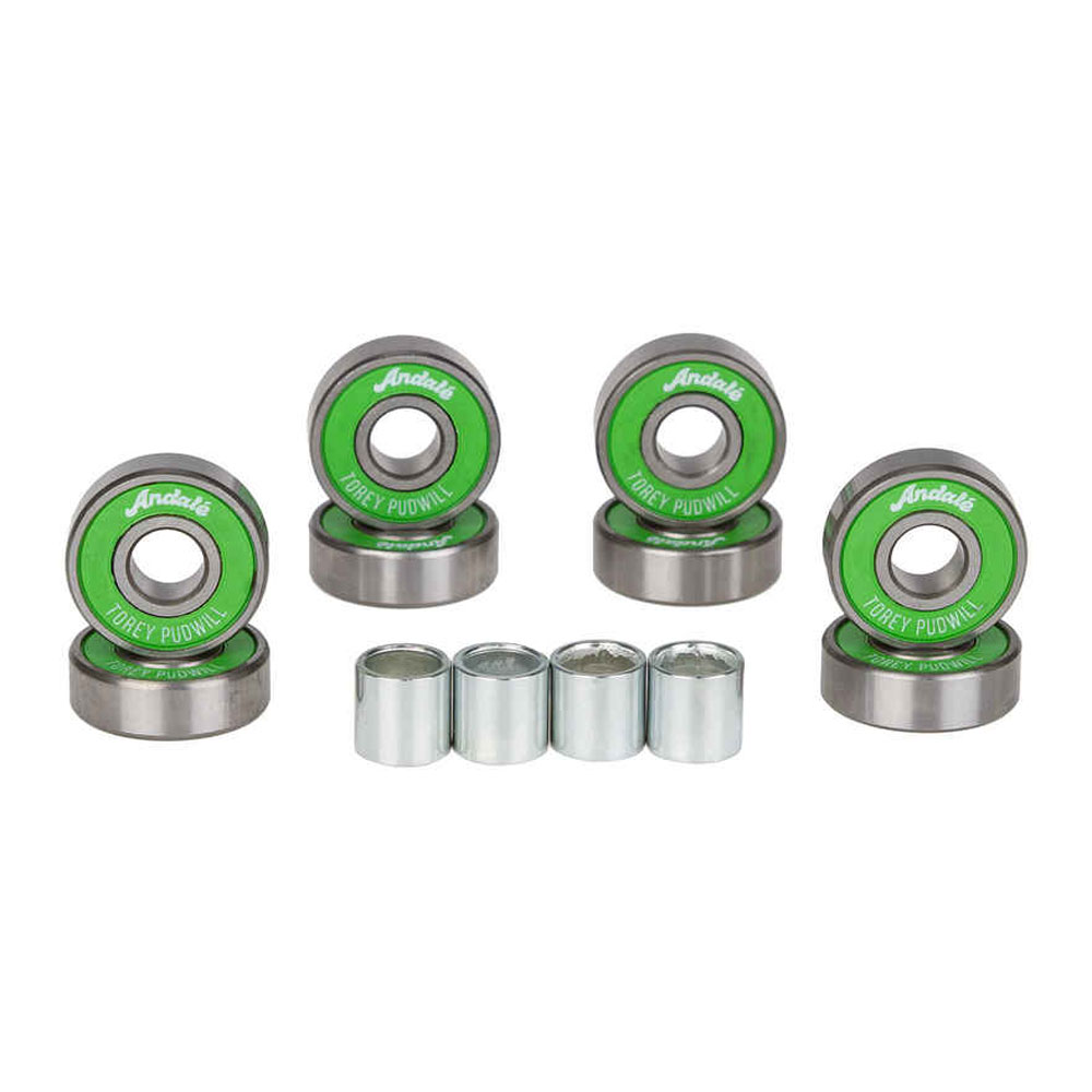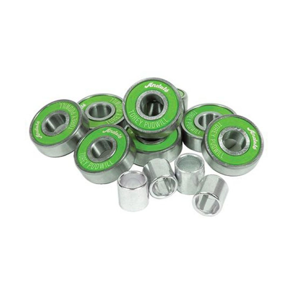 I Cuscinetti Andale Green Sauce Torey Pudwill sono di color verde. DIAMETRO: 8 mm. Nella confezione puoi trovare: 8 cuscinetti con foro da 8mm., 4 Spacer per cuscinetti, 1 cera per skateboard modello Bottiglietta. I cuscinetti Andale sono stati disegnati e testati da Torey Pudwill, cuscinetti creati ad Hoc per lo skateboarding.