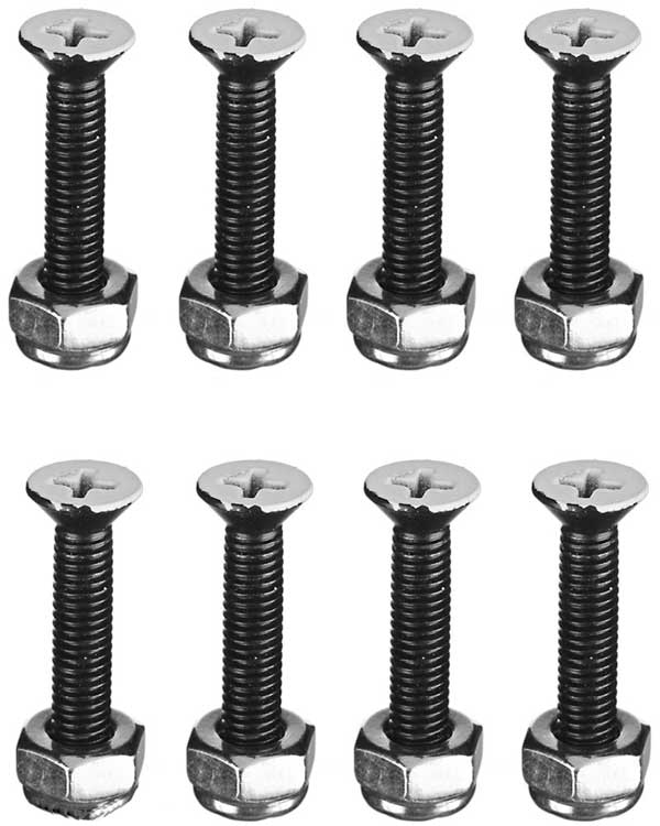 Hardaware Skate Bones 1'' con 8 viti nere con teaste dipinte di bianco e 8 dadi color argento. Adesivo incluso.
