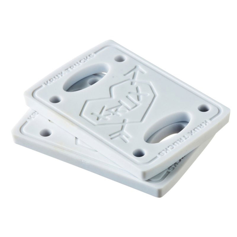Coppia dei nuovi Krux Riser Pads 1/4" utilizzabili su ogni tipo di skateboard di nuova generazione. Sono forati per ogni tipologia di Trucks nuovi. Usateli per aumentare il gioco ruota se si sta utilizzando i truck sfusi o ruote più grandi.