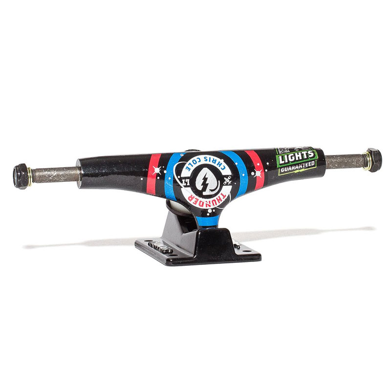 I Truck da Skate Thunder Cole Vojager Light Hi 147 sono trucks che pesano meno rispetto agli standard e offrono sulla tavola una buona geometria nelle linee ed una risposta rapida risposta in fase di manovra. Come se non bastasse, oltre ad essere molto belli ed accattivanti graficamente, tutti i trucks della Thunder sono garantiti a vita su eventuali difetti di produzione.