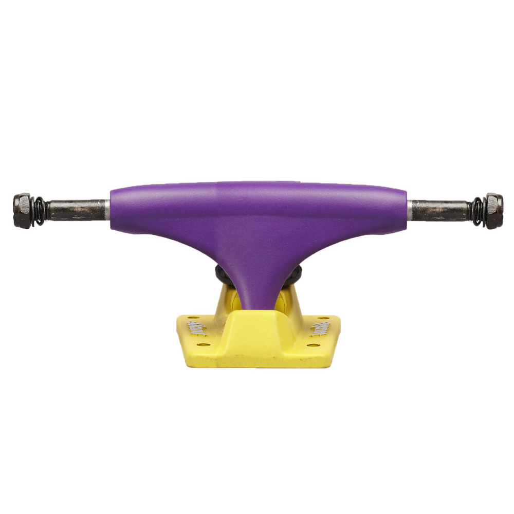 I Slant Purple Yellow 4.25" sono prodotti dalla Globe, brand australiano che da anni produce tavole e accessori da skateboards, quindi una garanzia di resistenza e affidabilità! Questo set di trucks sono per qualità e prezzo un ottimo prodotto per tutti gli appassionati di skate che non vogliono spendere cifre esagerate ed avere un prodotto di grande affidamento per tricks di ogni genere.