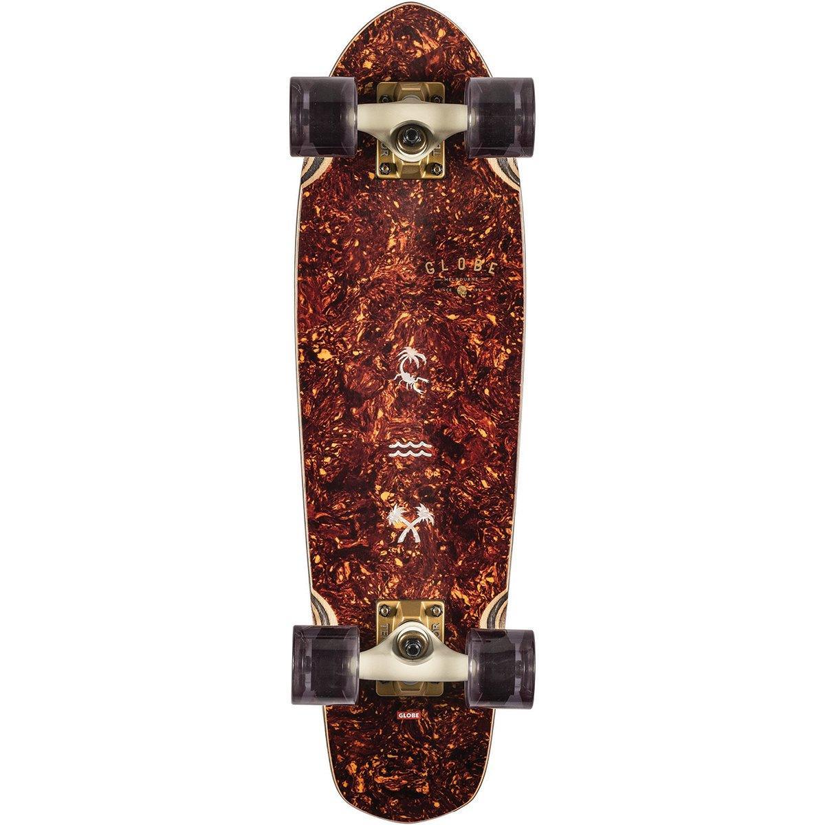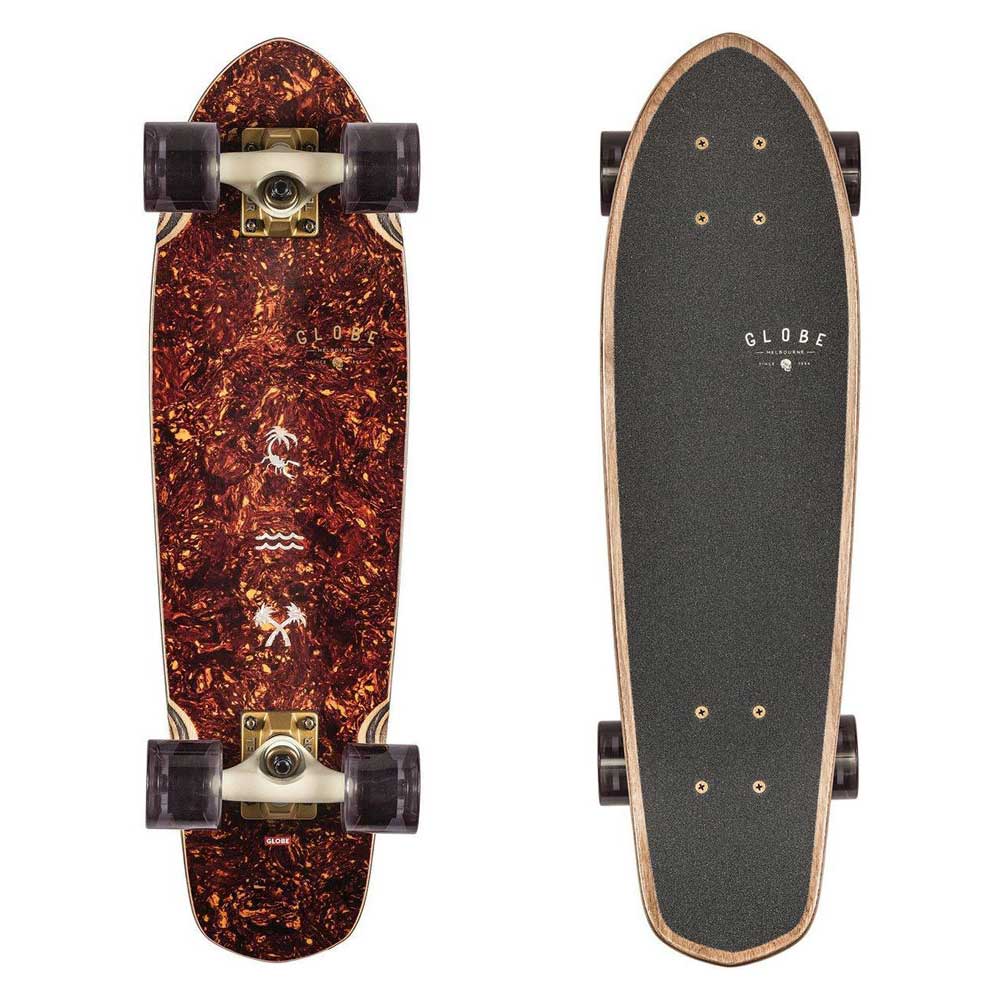 Il Cruiser Globe Skateboards Blazer Tortoise Shell 26'' è un mini cruiser a coda di diamante in legno GLOBE con morbide ruote coniche. È disponibile nelle dimensioni 26 "x 7,25" x 13,75 "bilanciamento del bianco. È realizzato in rovere bianco + anima in acero di roccia dura Resin-7. Ha un concavo morbido con coda di calcio e truck in lega tensor da 4,25" con ruote da 62 mm 78a. È dotato di una presa di trasmissione Clear e serie Artist di Niya Niya Studio.