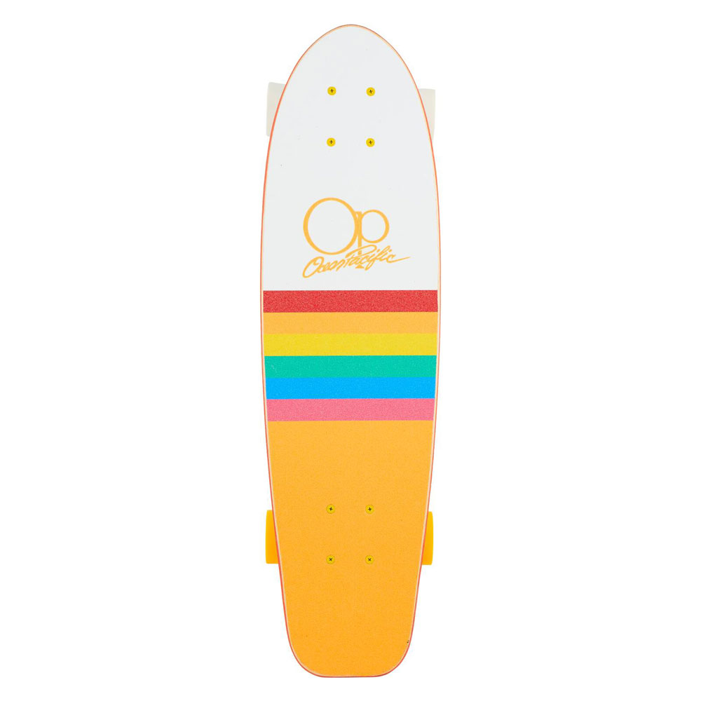 Il Cruiser Skateboard Completo Ocean Pacific Sunset 27'' è costruito per portarti in giro per la città, con un'enorme esplosione di colori ed una configurazione altamente professionale. Sbattilo sul marciapiede e inizia subito a skeitare. Mantieni il controllo con le ruote morbide rettificate, grazie alla loro buona adesione sull'asfalto.