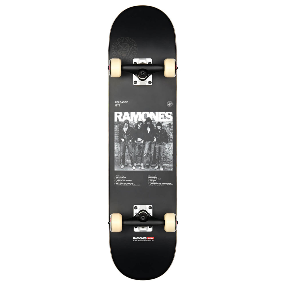 Il G2 Ramones colorway Ramones è un 7.75". Fa parte della nostra Album Series Completes. Arte in primo piano e dettagli estetici sul miglior completo che i soldi possano comprare. È fatto di Resin-7 hard rock maple con un Full concave. Dispone di 5.0" leghe Tensor con perni cavi con ruote da 53mm 101a. Viene fornito con split black griptape.