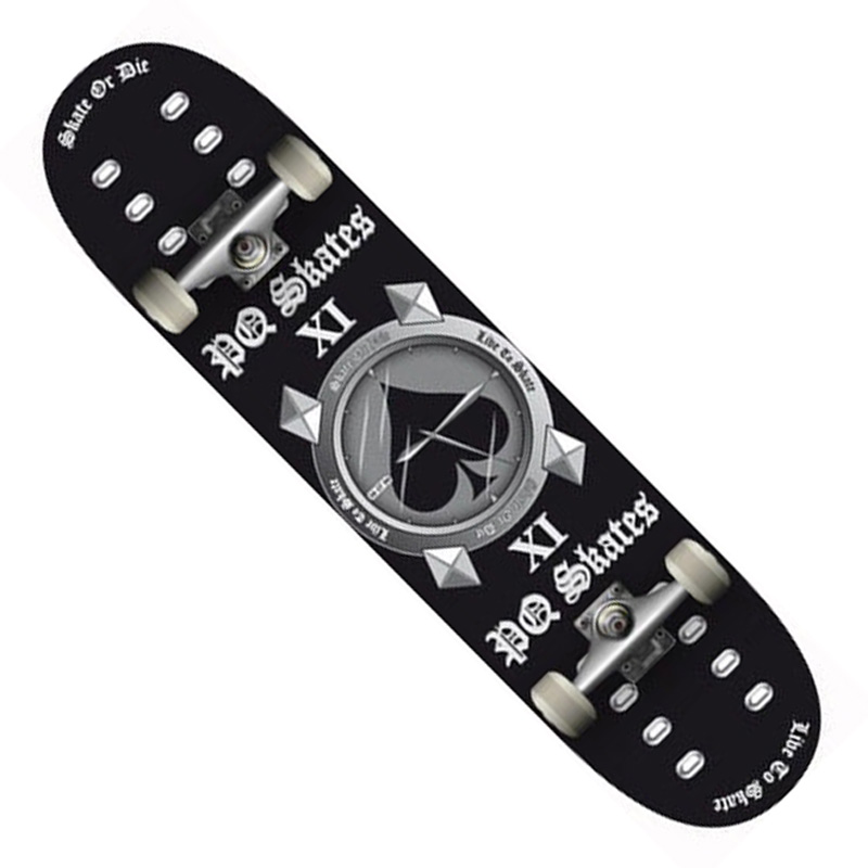 Lo Skateboards Completo PQ Watch è costituito da una tavola a 7 strati di acero canadese “Vero” e matrice collante Latex USA. Lo Skateboard Completo PQ Watch monta ruote in uretano 52mm 98A, cuscinetti carbon NKT 608 ZZ Abec 5 e trucks light 129.