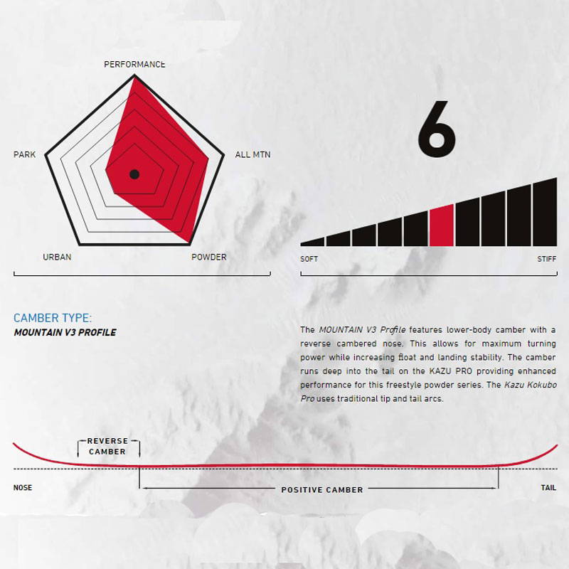 Nella Tavola da Snowboard Capita Kazu Kokubo Pro 154 ricerca e sviluppo non mancano. Infatti, è un’arma insostituibile per galleggiare nel powder più profondo, questa tavola è veloce, dall’elevata manovrabilità, perfetta per slashate leggendarie in backcountry. Mentre tutte le altre tavole da neve fresca solitamente sono larghe e dal profilo surf, la Kazu Kokubo Pro è racchiusa in una struttura compatta con nose tipico per il powder e un tail leggermente affusolato. La potenza di questa tavola si sprigiona grazie all’utilizzo del Panda Core, un’anima in cui stringhe realizzate in bamboo sono inserite in senso longitudinale per fornire un pop mai provato prima. Grazie ad inserti come gli archi in carbonio e la nuova e velocissima base realizzata in Omega Mark II, questa tavola regala delle performance incredibili. Da non sottovalutare la grafica 2016 della Kazu Kokubo Pro, la quale esplora le dimensioni della percezione wabi-sabi giapponese, ovvero la visione del mondo fondata sull’accoglimento della transitorietà delle cose. In quattro semplici parole.. Kanso: semplice. Koko: essenziale. Shinzen: naturale. Datsuzuko: libero.