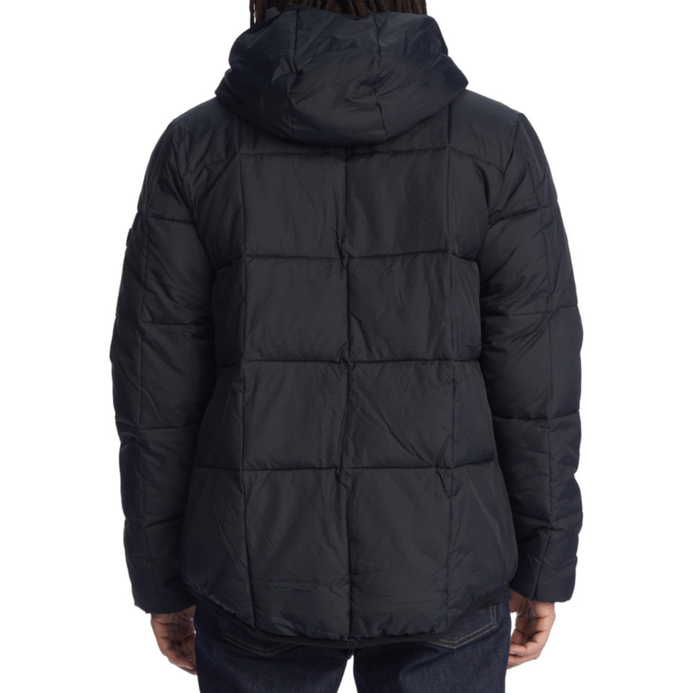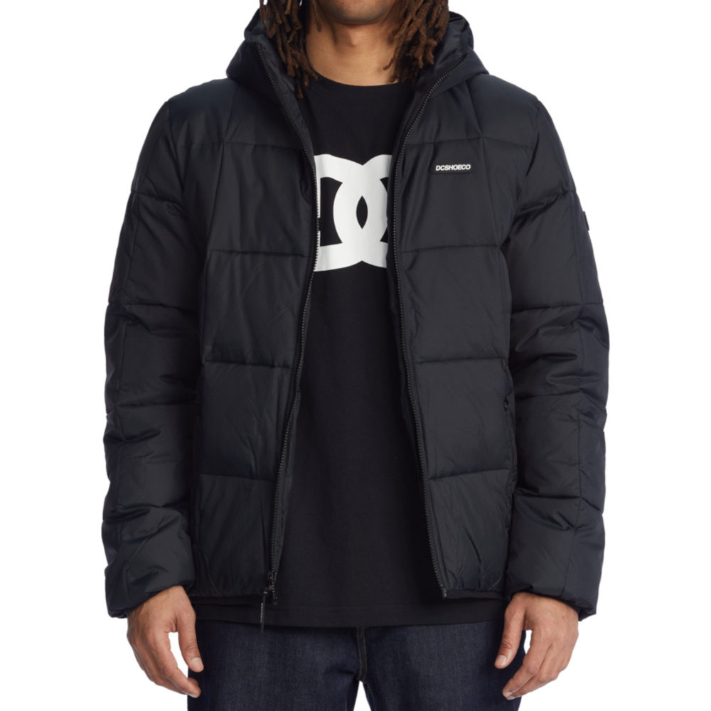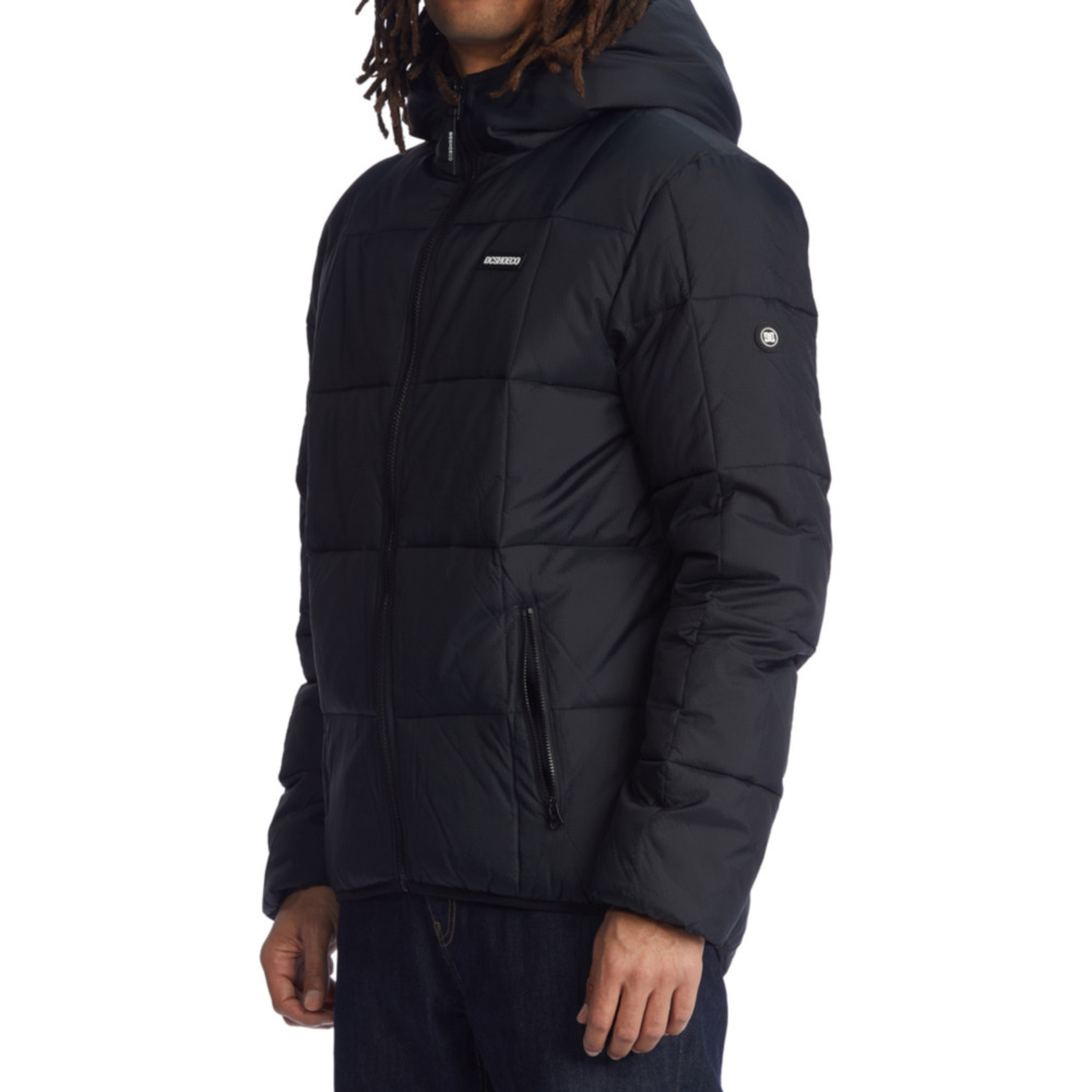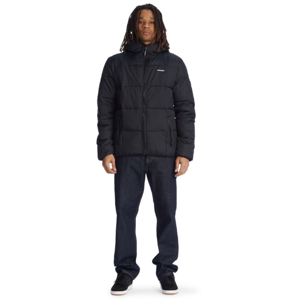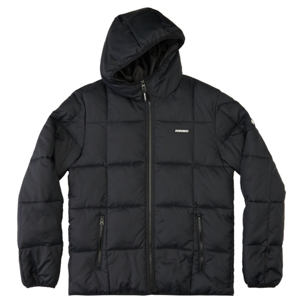 La Giacca DC Shoes Square Up Puffer 2 Black è una Giacca imbottita trapuntata da Uomo con cappuccio fisso a 3 pannelli, fodera in taffetà di poliestere con imbottitura da 280 g in finta piuma e tasche per le mani con cerniera a vista.