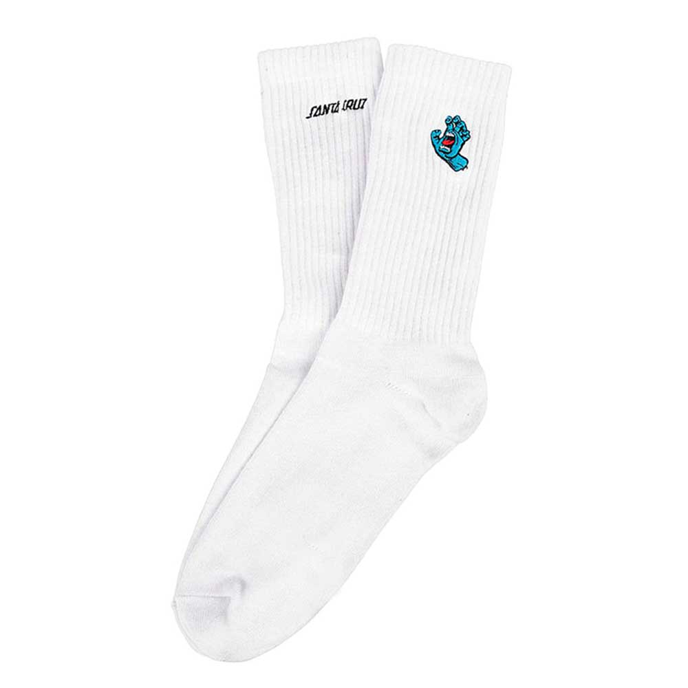 Le Calze Santa Cruz Sock Screaming Mini Hand White sono realizzate in taglia unica da uomo con logo della manoricamata a contrasto in blu su sfondo nero.
