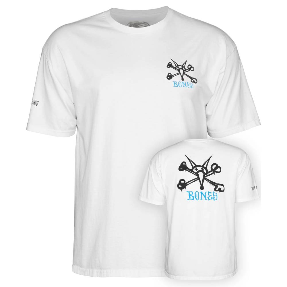 La T-shirt Uomo Powell Peralta Rat Bones White è una maglietta a maniche corte, girocollo in cotone, realizzata da Powell con stampa serigrafata Bones sul davanti perfetta per chi ama lo stile made in Usa e Skateboarding anni '80.