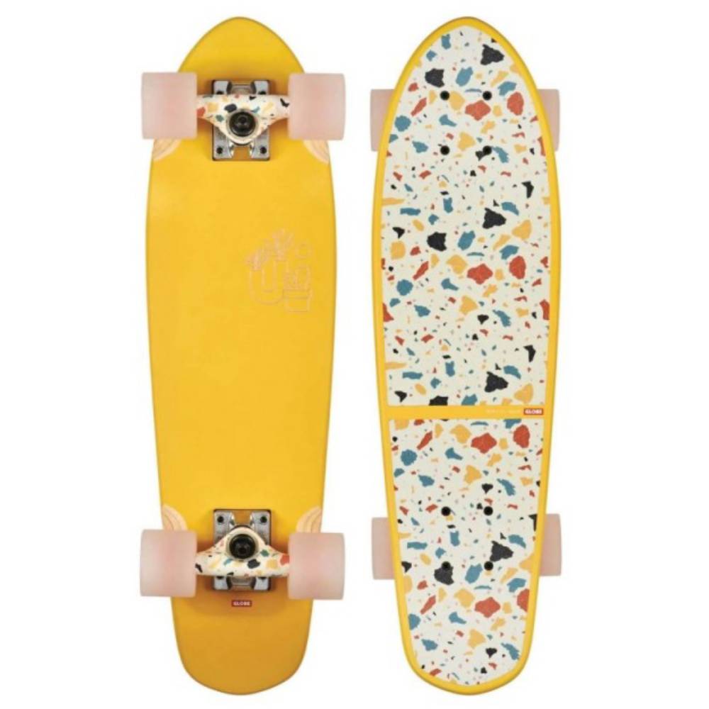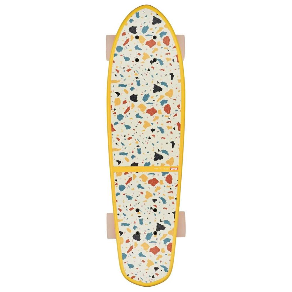 Il Cruiser Globe Skateboards Blazer Mimosa Terrazzo 26'' è un mini cruiser in legno con coda di diamante con morbide ruote coniche. È disponibile nella misura 26" x 7.25" x 13.75" WB. Presenta una base in cocco e acero con un morbido concavo con coda di spinta. Questo incrociatore Globe ha camion in lega Tensor da 4,25" e ruote 78a da 62 mm. Il piano superiore è una presa di trasmissione trasparente.
