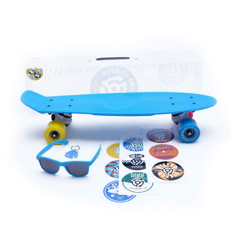 Il Penny Stereo Cruiser Vinyl Cyan White CMYK fa parte della nuova serie Vinyl Cruiser con Nuovi Colori. La Tavola Stereo è in plastica preassemblata ispirata alle prime tavole anni ’70/’80, con trucks di prima scelta e ruote da cruising morbide e grosse.